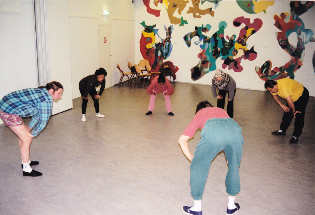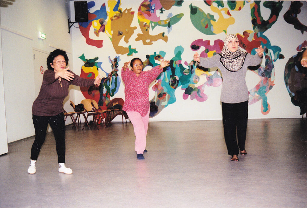 Naar aanleiding van mijn ervaringen met dansexpressie en yoga heb ik een bewegingssysteem bedacht waar mee je meditatieve dans beoefend. Je beweegt dan vanuit je eigen motivatie; dat is je positieve kracht. Enkele jaren was dit een lopende activiteit voor enkele groepen in het buurthuis Oleander. Deze foto’s zijn uit ongeveer 2002.